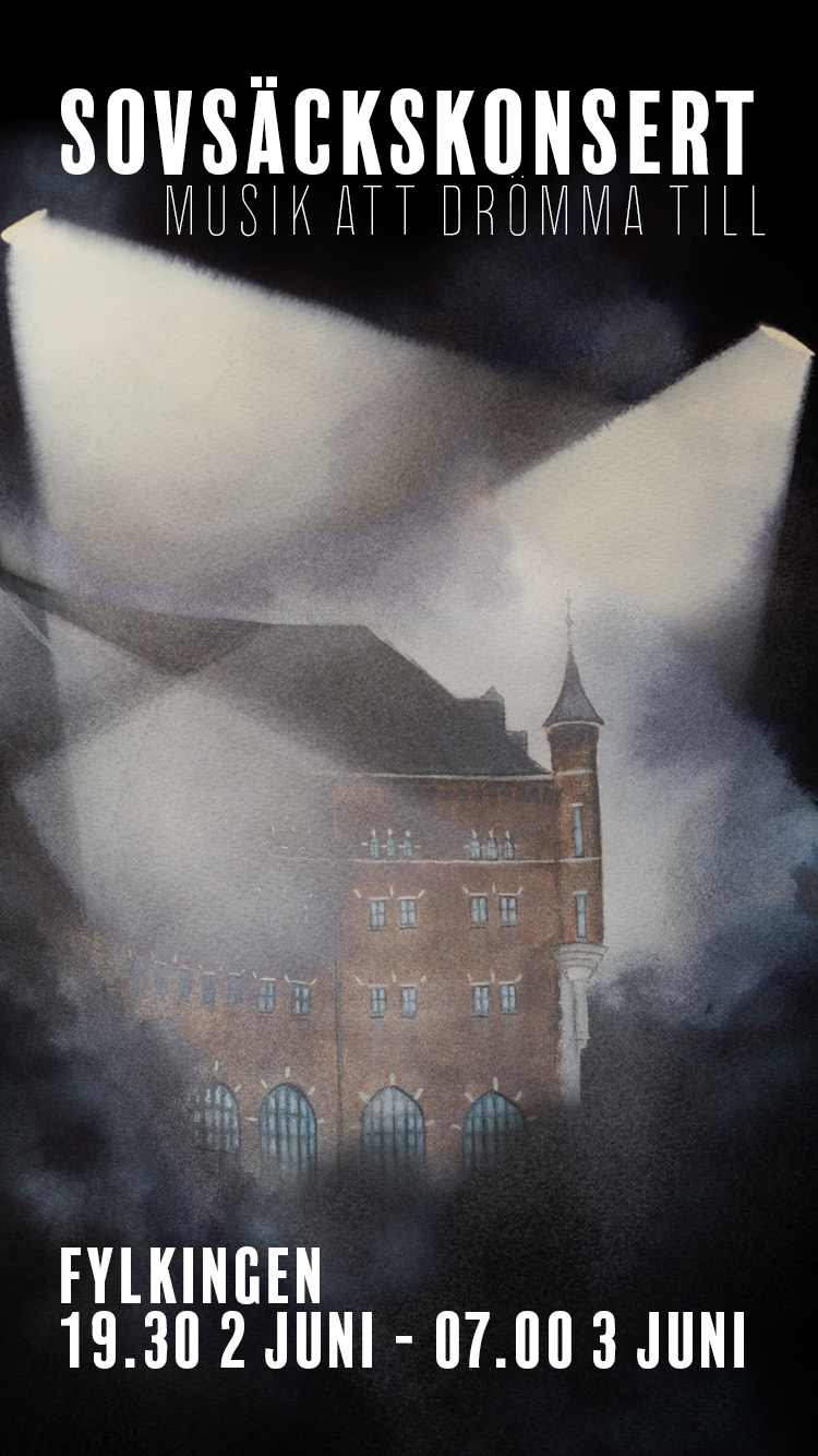 Posters and images for social media to promote an all-night concert at Fylkingen, Stockholm in June 2023. Created using multiple watercolour and ink paintings overlayed.